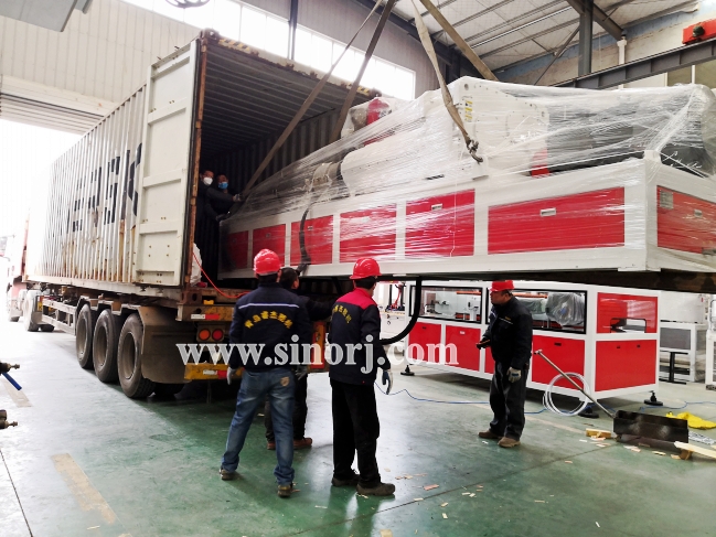 試機成功的PVC地板革生產線發貨尼泊爾。。。。。。